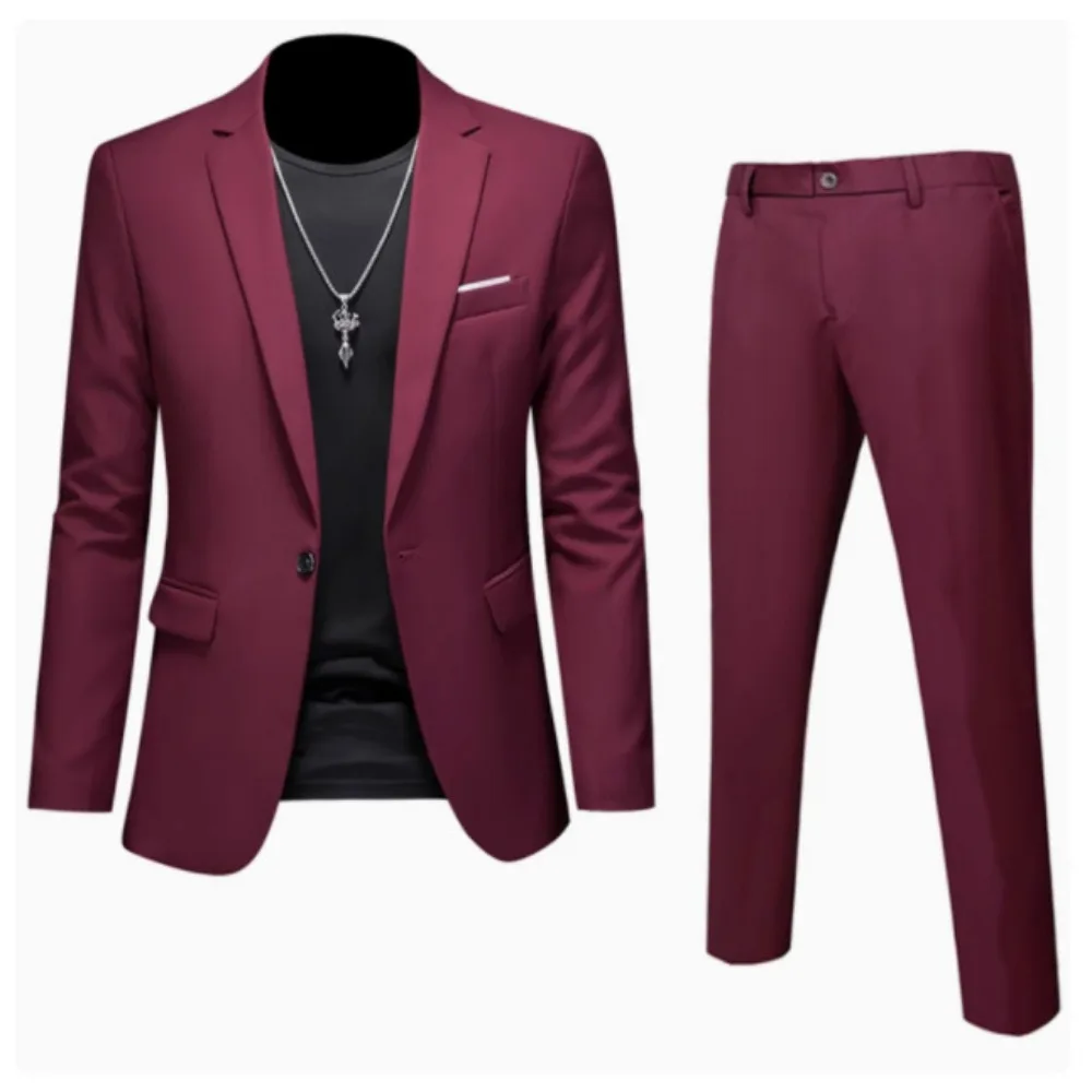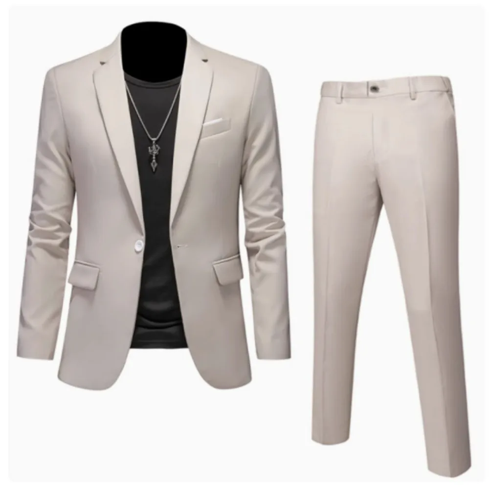 Suits Men Two Piece Sets Pant Set Blazer Turn Down Collar Full Sleeve Slim Fit Tight Waist Coat Long Pants Wedding Fabric Upgade